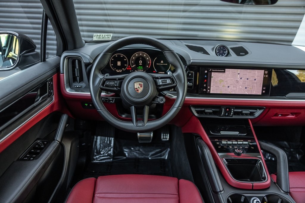 Porsche South Bay is thrilled to offer this exceptional Clean Carfax - 1 Owner, Serviced at Porsche South Bay, Porsche Approved Certified Pre-Owned 2025 Porsche Cayenne E-Hybrid finished in Chromite Black Metallic over Black/Bordeaux Red Leather