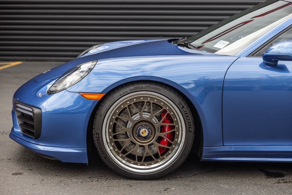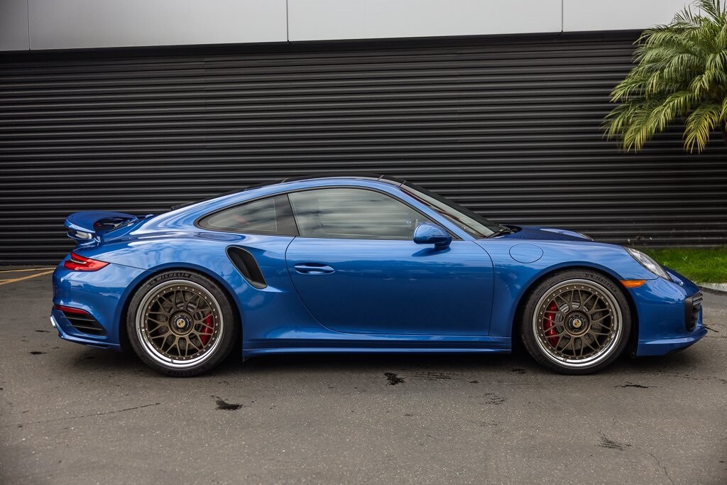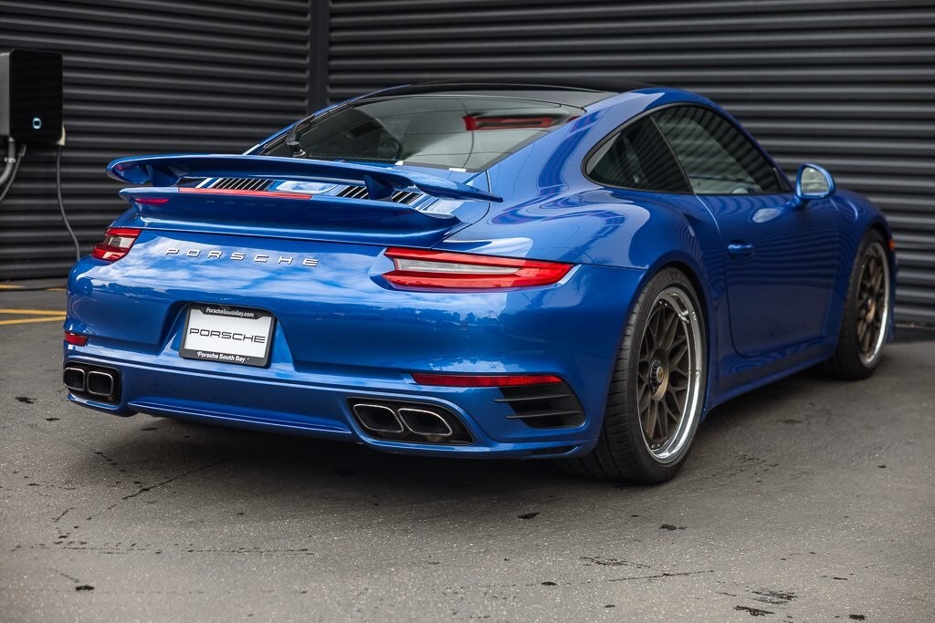 Porsche South Bay is thrilled to offer this exceptional. 2017 Porsche 911 Turbo Sapphire Blue Metallic Clean Carfax, AWD, 18-Way Adaptive Sport Seats, Apple CarPlay, Burmester High-End Surround Sound System, Electric Slide/Tilt Sunroof in Glass, Fire Extinguisher, Front Axle Lift System, Front Seat Heating, Front Seat Ventilation, Heated Multifunction Steering Wheel, Instrument Dials in White, Lane Change Assist, Luggage Net in Passenger Footwell, Porsche Dynamic Chassis Control, Porsche Entry & Drive, Power Folding Exterior Mirrors, Power Steering Plus, Rear Fascia Painted, Rear Wiper, Seat Belts in Guards Red, Side Mirror Lower Trim Painted, Side Skirts Painted, Smoking Package, Sport Chrono Stop Clock in White, Sun Visors in Alcantara, Wheels: 9J x 20" Fr/11.5J x 20" Rr 911 Turbo S. AWD 7-Speed Porsche Doppelkupplung (PDK) 3.8L 6-Cylinder
